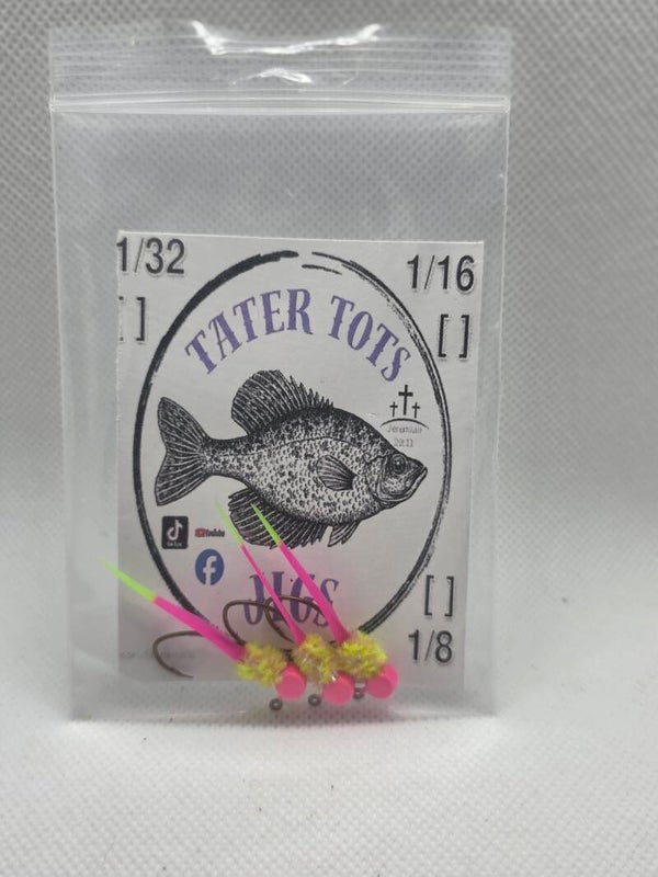 Hot pink head with a yellow lemonade cheenile with a pink a yellow tip wedge tail .