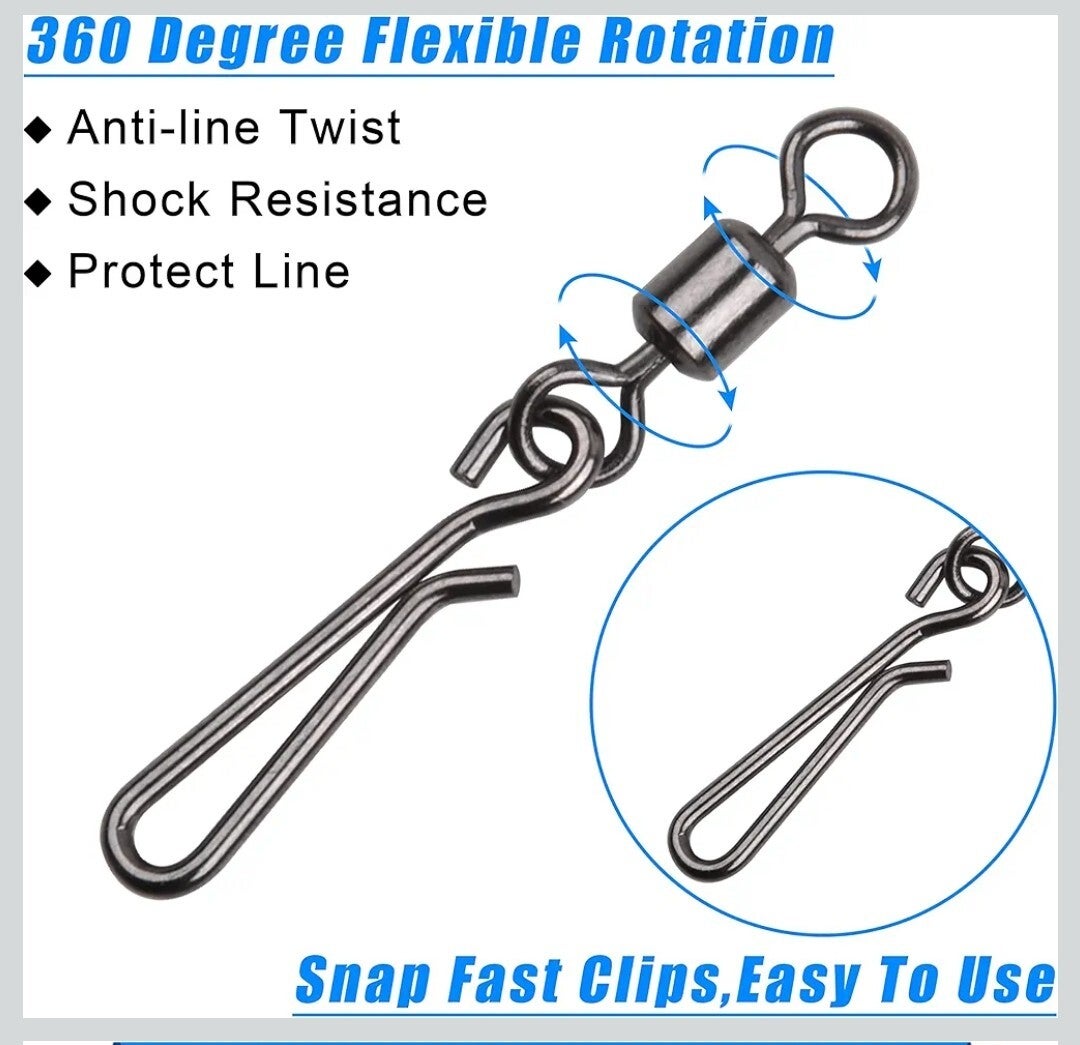 The prefect size crappie speed clips . To switch your baits out quick and easy . No more cutting and retie need . Swivel to keep from line twist happening. No worried on losing a fish heavy duty enough to make sure to land that big crappie .
